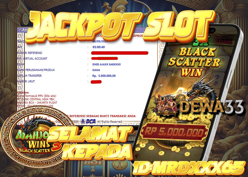 Kemenangan besar kembali tercatat di DEWA33, salah satu situs slot online terpercaya dengan reputasi pembayaran cepat dan aman. Kali ini, member beruntung dengan ID MRDXXX65 berhasil meraih kemenangan spektakuler sebesar Rp5.000.000 melalui game populer Mahjong Wins 3 – Black Scatter Win.