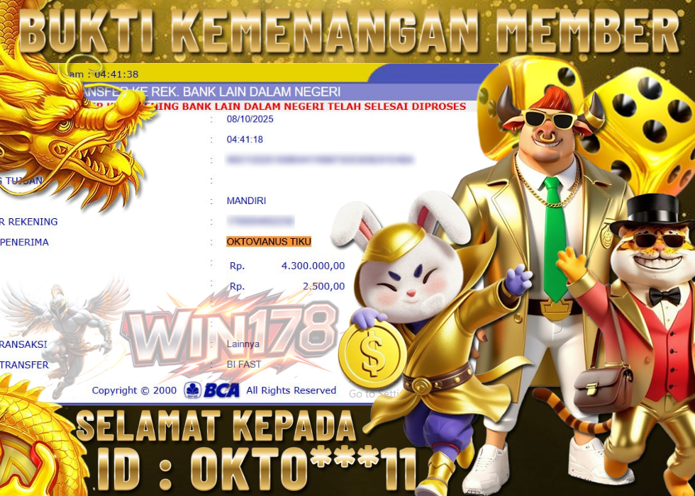 WIN178 kembali menunjukkan performa gemilang sebagai platform gaming terpercaya. Seorang member beruntung baru saja membawa pulang kemenangan spontan senilai Rp 4.000.000. meskipun Yang menggembirakan, jackpot ini berhasil WIN178 raih hanya dalam beberapa putaran permainan, membuktikan WIN178 memberikan peluang menang nyata dan terbuka untuk semua pemain. Setiap putaran WIN178 menawarkan pengalaman bermain yang menghibur dan kesempatan meraih keuntungan maksimal.
