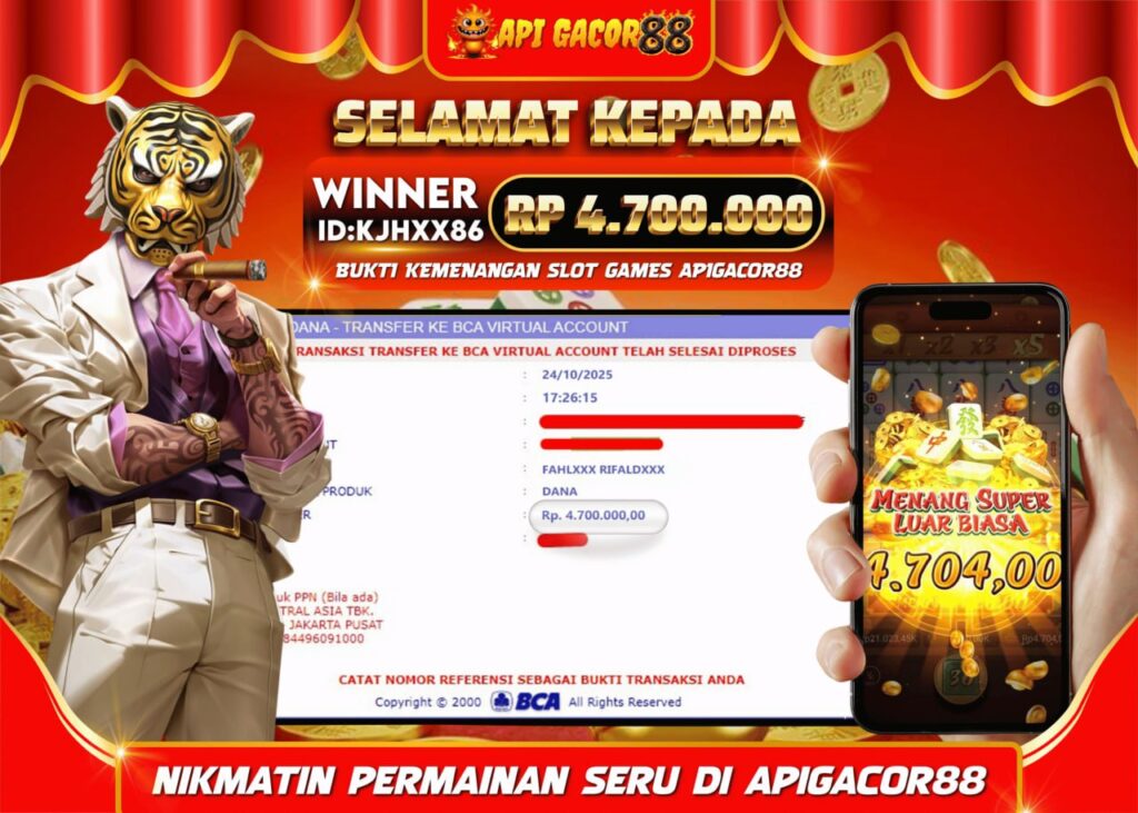 Member APIGACOR88 Raih Kemenangan Rp4.700.000 di Game Slot pada 24 Oktober 2025