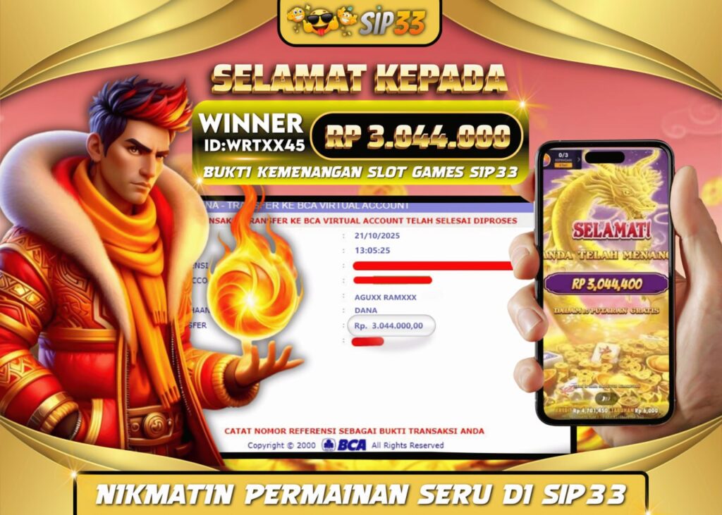 Kabar gembira datang dari situs slot terpercaya SIP33! Salah satu member setia dengan ID RTSXX35 berhasil mencetak kemenangan fantastis sebesar