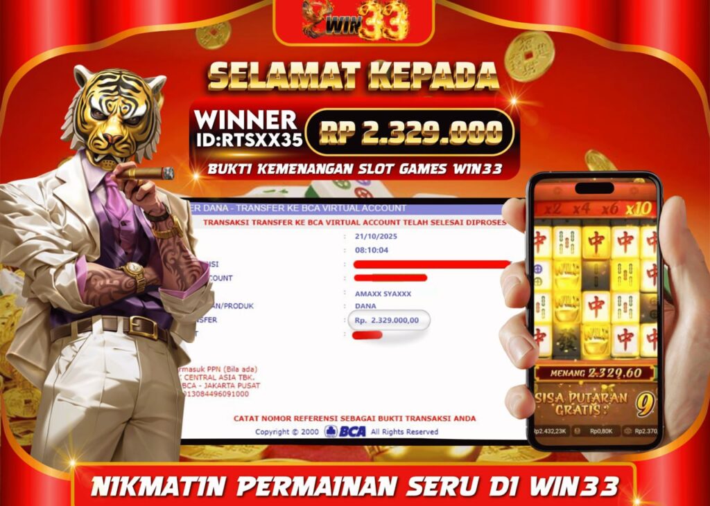 Win33 kembali menghadirkan kabar gembira untuk para pecinta slot online! Kali ini, salah satu member setia dengan ID RTSXX35 berhasil