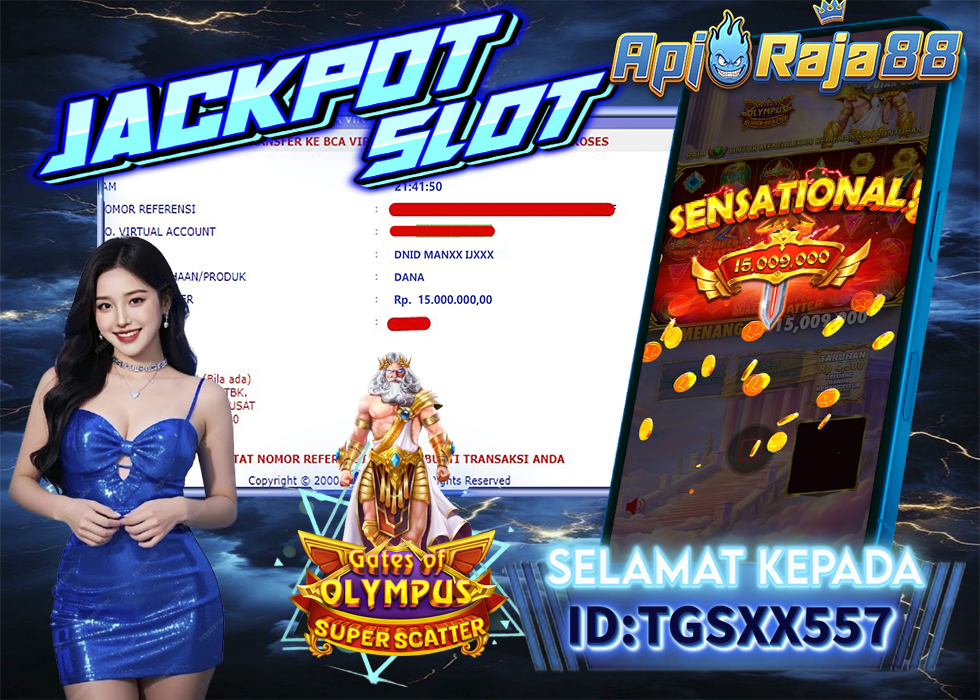 Kabar gembira kembali datang dari komunitas pecinta slot online di APIRAJA88. Salah satu member setia dengan ID TGSXX557 sukses meraih kemenangan luar biasa senilai Rp15.000.000 hanya dalam satu sesi permainan di game legendaris Gates of Olympus. Kemenangan ini tercatat resmi pada 07 September 2025 pukul 21:41:50 WIB, dan langsung dicairkan melalui transfer dana sebesar Rp15 juta tanpa hambatan.