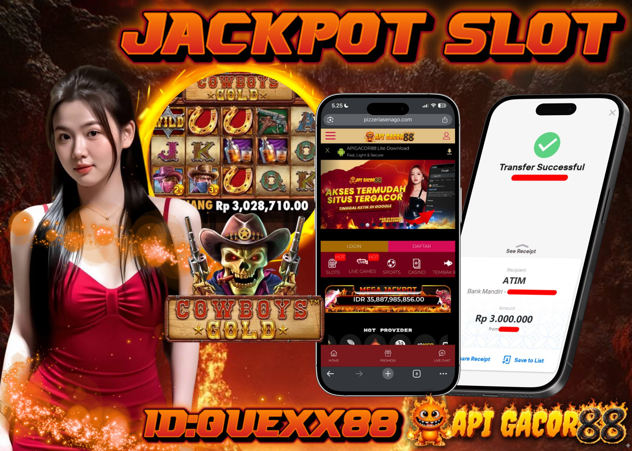 Kalau member QUEXX88 bisa menang Rp 3 Juta dari modal bonus, kamu juga bisa! Jangan tunda lagi โ€” daftar sekarang di APIGACOR88, klaim BONUS 100%, dan mulai putar keberuntunganmu di Cowboys Gold!