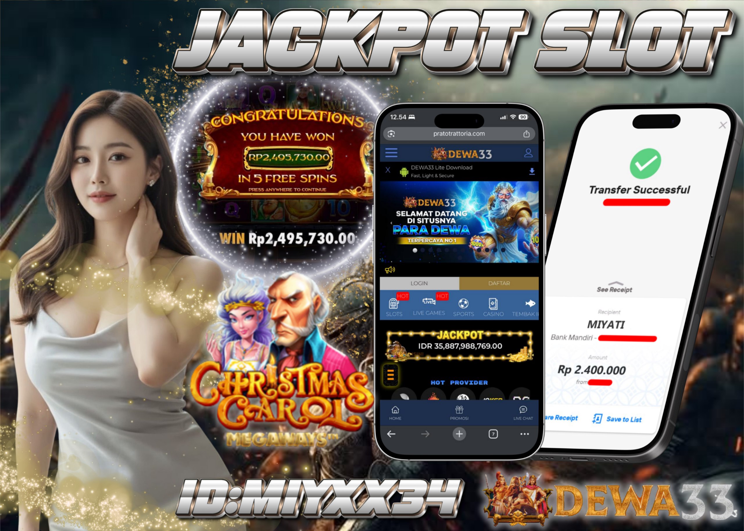 Kemenangan manis kembali hadir di situs terpercaya DEWA33! Kali ini datang dari member aktif dengan ID MIYXX34, yang berhasil membawa pulang kemenangan sebesar Rp2.400.000 dari permainan slot bertema Natal, Christmas Carol, pada 18 Oktober 2025. ❄️🎁