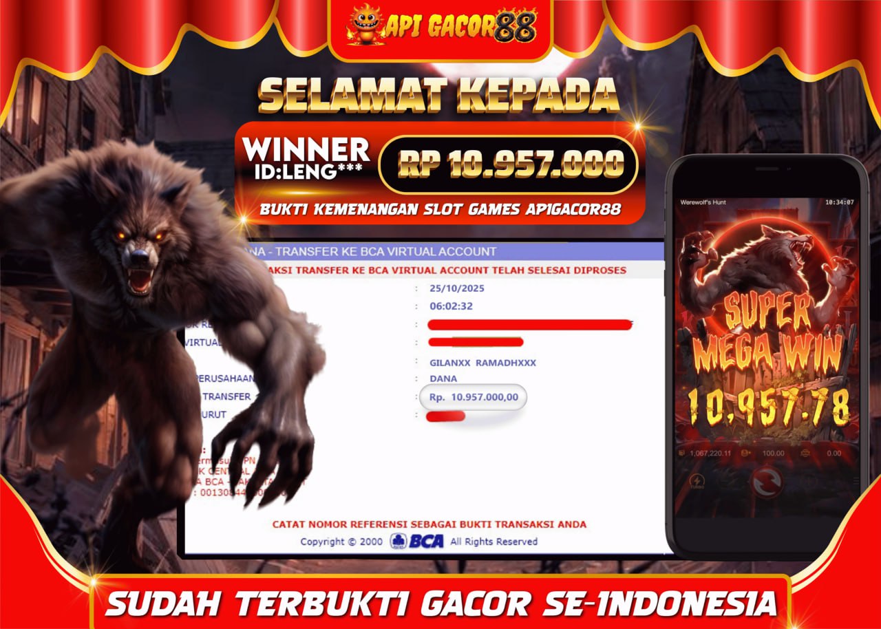 Kabar gembira datang dari APIGACOR88, situs slot online terpercaya yang kembali membuktikan diri sebagai tempat bermain paling gacor, aman, dan menguntungkan! Pada 25 Oktober 2025, salah satu member setia dengan ID LENG* berhasil meraih kemenangan spektakuler senilai Rp10.957.000 hanya dari bermain game slot online favoritnya.