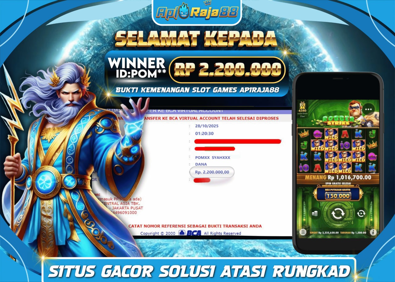 Kemenangan ini menjadi bukti nyata bahwa APIRAJA88 adalah tempat terbaik untuk bermain slot online dengan peluang menang besar setiap harinya. Selain itu, berbagai promo dan bonus menarik siap menambah modal bermain untuk seluruh member aktif.