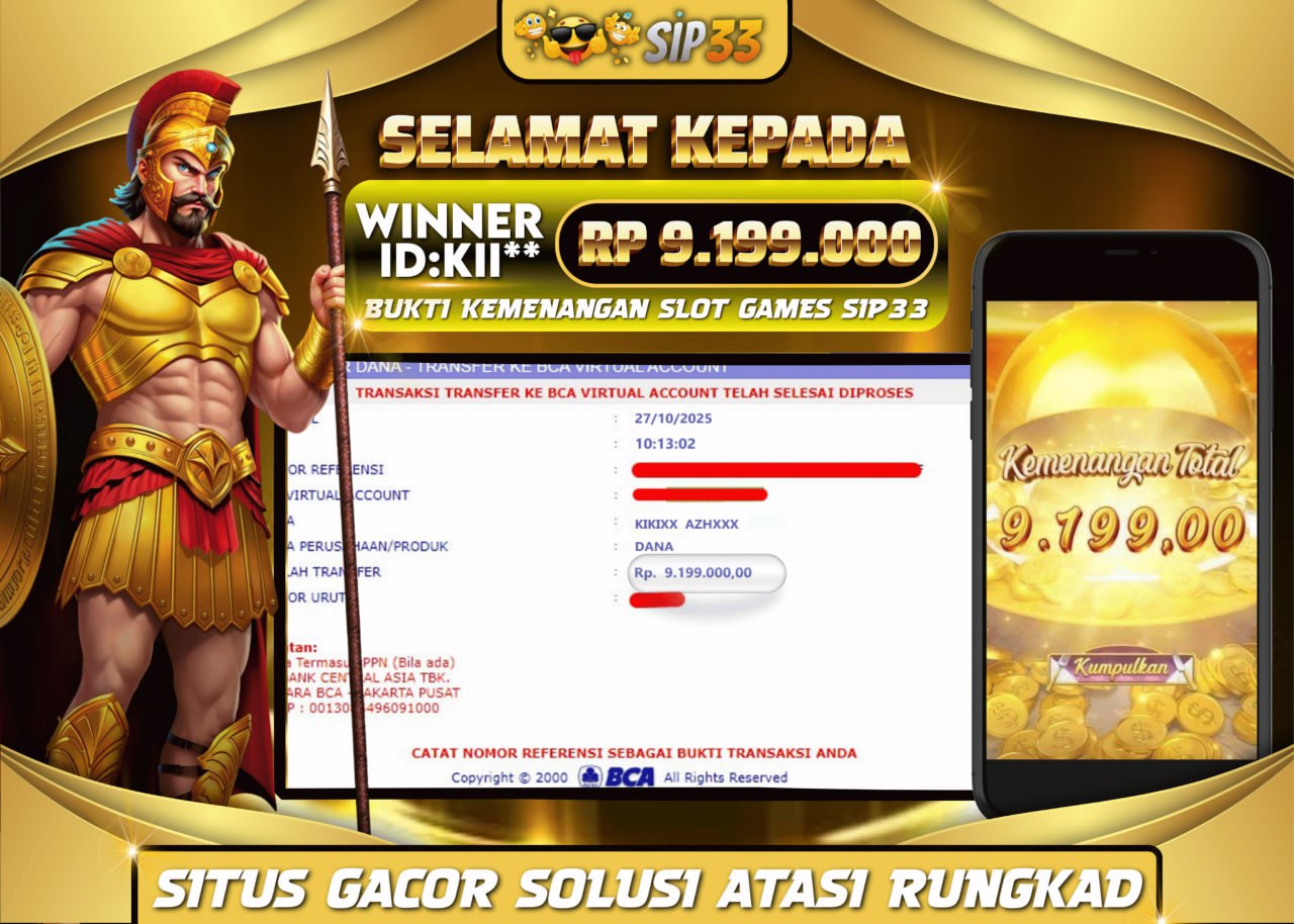Bergabunglah sekarang di SIP33, nikmati bonus deposit 10%, dan mainkan slot favoritmu. Siapa tahu, ID kamu yang berikutnya tercatat sebagai pemenang besar seperti KII*!