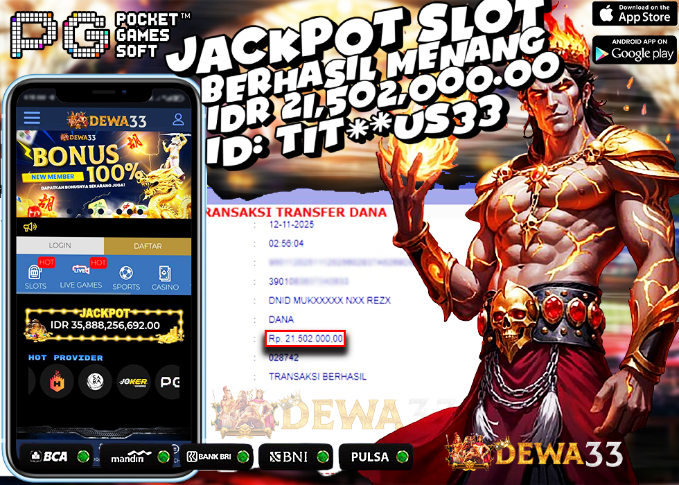 Kemenangan Rp21.502.000 yang diraih oleh pemain DEWA33 membuktikan bahwa peluang menang besar benar-benar terbuka bagi siapa saja. Dengan berbagai pilihan permainan menarik seperti slot online, live casino, dan game lainnya, setiap pemain memiliki kesempatan untuk mencetak kemenangan spektakuler.