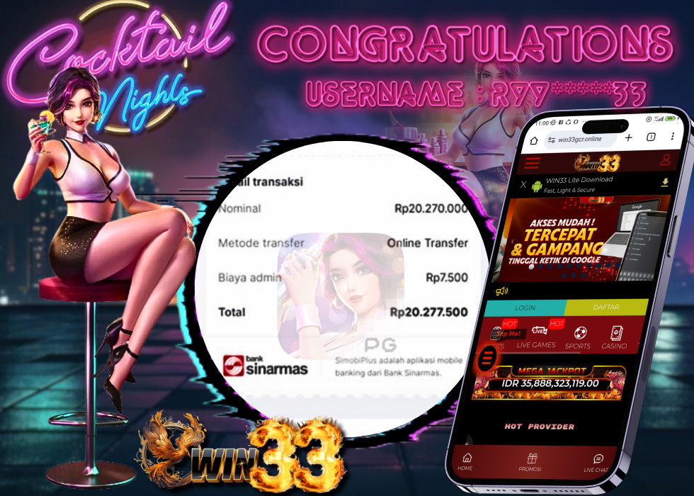 WIN33 kembali mencatatkan sejarah emas dalam dunia gaming! Seorang member setia berhasil membawa pulang kemenangan spektakuler senilai Rp 20.000.000. meskipun Yang luar biasa, jackpot senilai dua puluh juta rupiah ini berhasil kamu raih hanya dalam satu sesi permainan, membuktikan WIN33 memang menghadirkan peluang maxwin yang nyata dan terbuka untuk semua pemain.