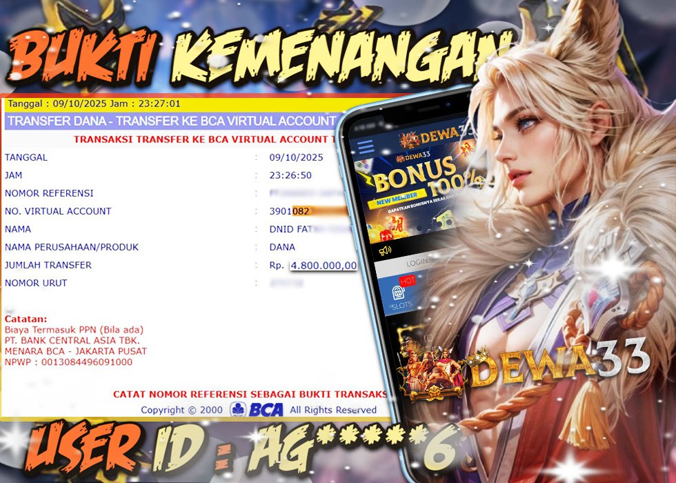 DEWA33 kembali membuktikan komitmennya sebagai platform gaming terpercaya. Seorang member beruntung baru saja membawa pulang kemenangan spontan senilai Rp 4.000.000. Yang menggembirakan, jackpot ini berhasil diraih dalam waktu sangat singkat, membuktikan DEWA33 memberikan peluang menang nyata tanpa berbelit-belit. Setiap putaran di DEWA33 menawarkan pengalaman bermain seru dan peluang meraih keuntungan maksimal.
