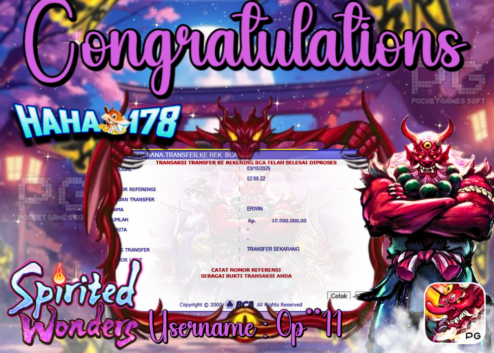 HAHA178 kembali membuat kejutan fenomenal! Seorang member beruntung berhasil membawa pulang kemenangan besar senilai Rp 10.000.000. Yang menakjubkan, jackpot ini berhasil kamu raih hanya dalam beberapa putaran saja, membuktikan HAHA178 memberikan peluang nyata tanpa drama. Setiap detik bermain dalam HAHA178 menghadirkan sensasi tak terlupakan dan kesempatan emas untuk meraih keuntungan fantastis.