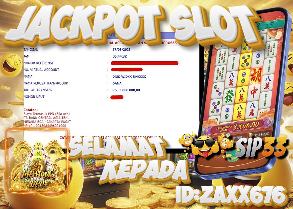 ID ZAXX676 Raih Jackpot Rp 3.800.000 di Mahjong Ways II Bersama SIP33