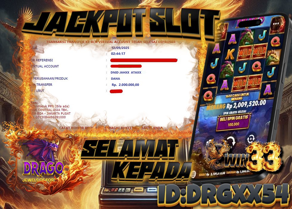 Kemenangan Rp 2.009.520,00 yang diraih oleh member DRGXX54 di game Drago Jewels of Fortune menjadi bukti nyata bahwa bermain di WIN33 bisa membawa keberuntungan besar.
