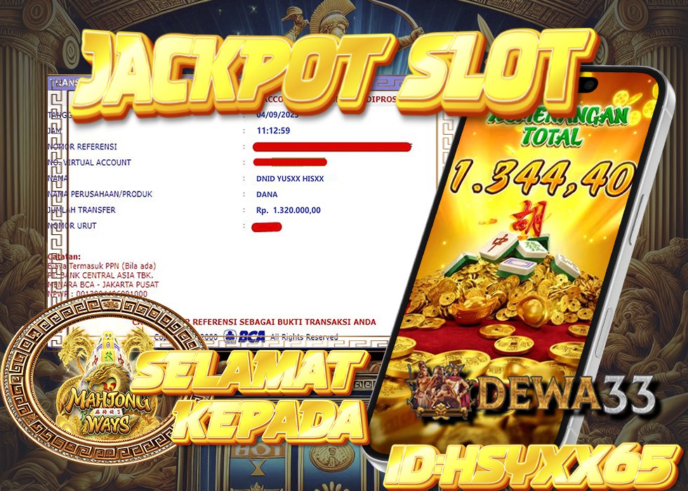 Kemenangan Rp 1.344.400,00 yang diraih oleh ID: HSYXX65 membuktikan bahwa DEWA33 adalah tempat terbaik untuk berburu jackpot slot online. Semua kemenangan dijamin cair, tanpa potongan, tanpa alasan, dan tanpa delay.