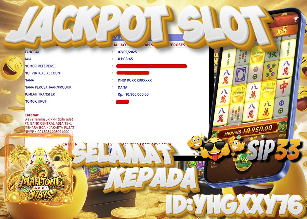 Hari ini, ID YHGXXY76 berhasil membawa pulang lebih dari Rp10 juta hanya dari game Mahjong Ways. Besok, mungkin giliran Anda yang meraih kemenangan lebih besar. Dengan modal kecil dan sedikit keberuntungan, siapa saja bisa jadi jutawan mendadak di SIP33.