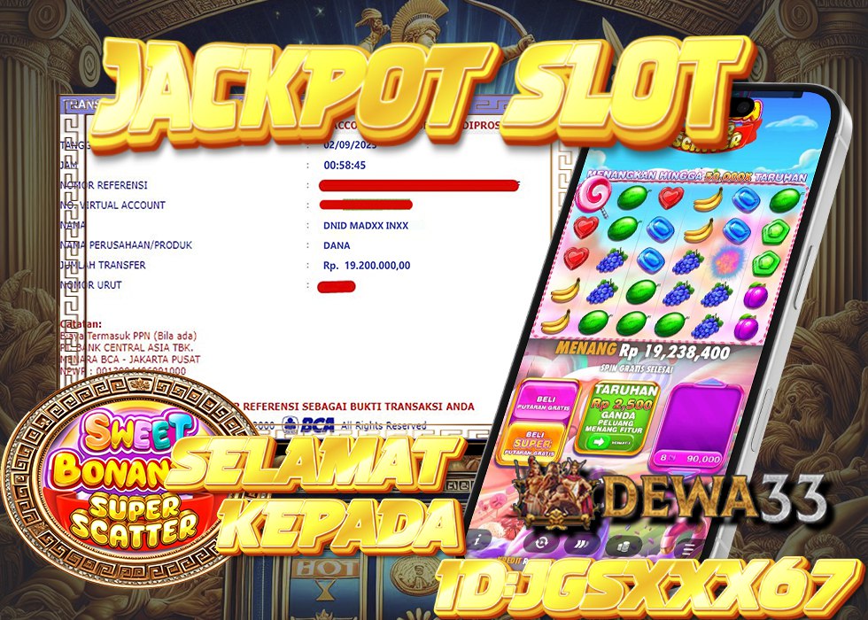 Kemenangan member DEWA33 dengan ID JGSXXX67 senilai Rp 19,2 juta di Sweet Bonanza pada 12 September 2025 adalah bukti nyata bahwa slot gacor itu benar-benar ada. Dengan RTP tinggi, layanan cepat, dan peluang jackpot setiap hari, DEWA33 adalah pilihan terbaik untuk para pemain slot online.