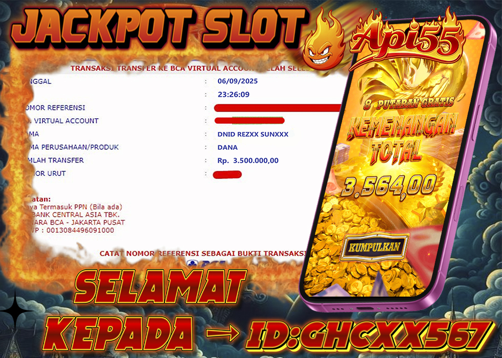 Kemenangan GHXX567 ini semakin menambah daftar panjang pencapaian member yang sukses di API55. Proses pencairan kemenangan sebesar Rp3.564.000 berlangsung cepat dan aman hanya dalam hitungan menit, membuktikan bahwa API55 selalu membayar penuh tanpa ada potongan.