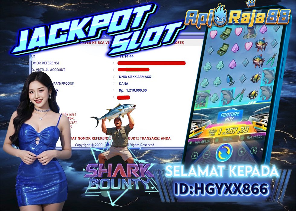 Dengan kemenangan Rp 1.257.200,00 di game Shark Bounty, member HGYXX866 berhasil membuktikan kalau ApiRaja88 memang surganya slot gacor.