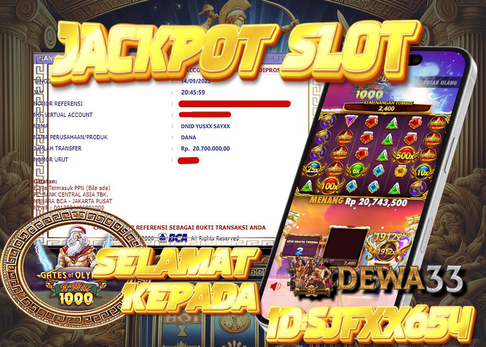 JACKPOT SLOT DEWA33 – MEMBER ID: SJFXX654 MENANG Rp 20.743.500