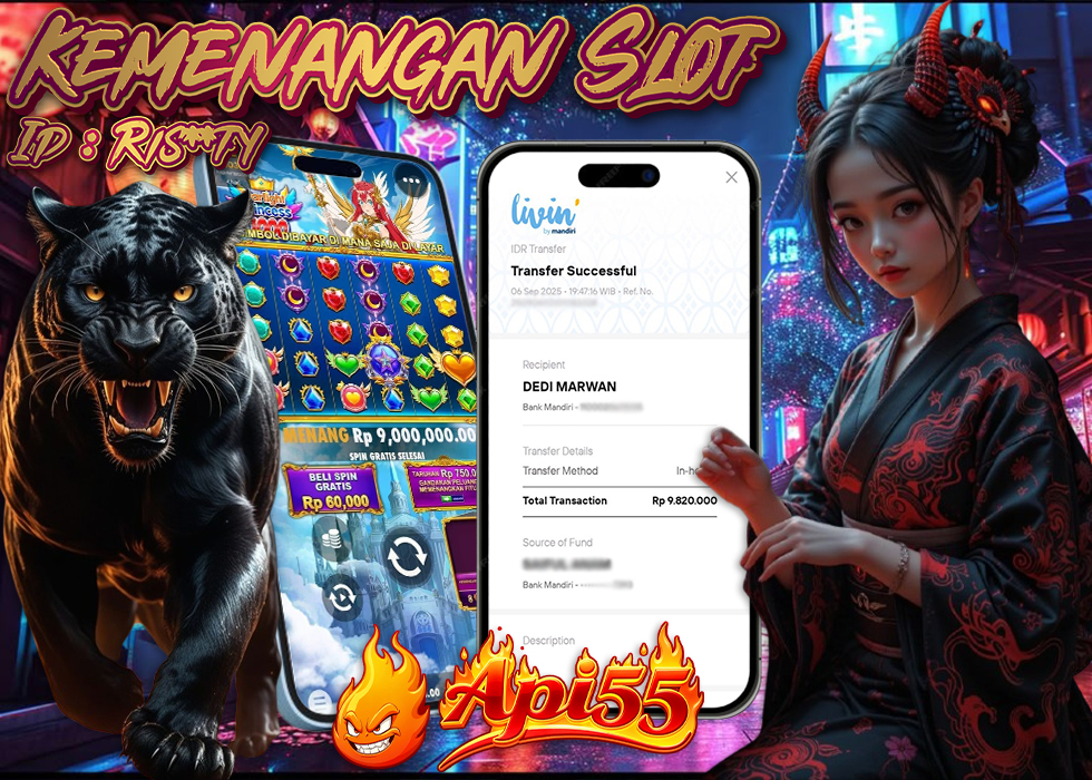 Selain keseruan bermain, hal yang membuat para member semakin percaya dengan API55 adalah sistem pembayaran yang cepat, aman, dan transparan. Pada kemenangan kali ini, total Rp 9.820.000 langsung dikirimkan kepada member melalui metode Mandiri ke Mandiri tanpa adanya kendala. Proses pencairan yang lancar membuktikan bahwa API55 adalah situs terpercaya yang selalu mengutamakan kenyamanan para pemainnya, menjadikannya pilihan utama bagi mereka yang mencari situs slot online dengan pelayanan terbaik.