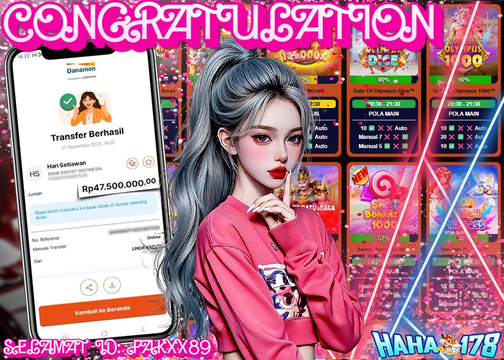 meskipun jadi penonton yang hanya bisa berdecak kagum! Bergabunglah sekarang dengan HAHA178 dan raih kesempatan emas menjadi pemenang berikutnya. Manfaatkan bonus new member spesial dan promo mega jackpot yang sedang berlangsung. Kisah Rp 47.000.000 ini bisa menjadi kenyataan Anda selanjutnya! Daftar sekarang dan buktikan bahwa mimpi jackpot bukanlah hal mustahil dalam HAHA178!