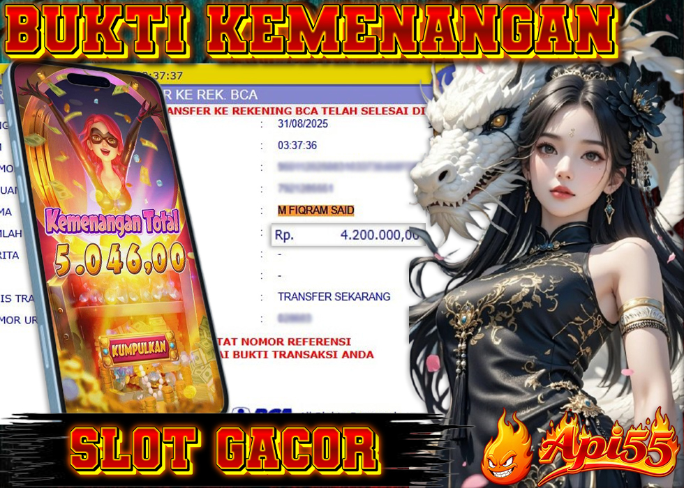 Kepercayaan member terhadap situs slot online tidak hanya datang dari kemenangan semata, tetapi juga dari kecepatan dan keamanan proses transaksi. API55 membuktikan profesionalitasnya dengan membayar kemenangan sebesar 4,200,000 melalui jalur BCA ke BCA secara cepat, aman, dan tanpa kendala. Proses pencairan dana berjalan lancar sehingga menambah kenyamanan para pemain yang ingin segera menikmati hasil kemenangan mereka. Hal ini menunjukkan bahwa API55 selalu berkomitmen memberikan pelayanan terbaik bagi seluruh membernya.