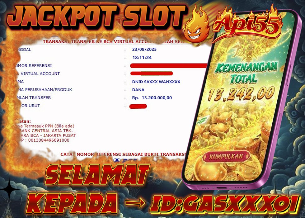 Setelah meraih kemenangan Rp 13.200.000, proses pembayaran yang dilakukan oleh member GASXXX01 berjalan sangat lancar melalui transfer bank BCA. Proses transaksi yang cepat tanpa hambatan menjadi salah satu keunggulan utama dari Api55, karena situs ini selalu mengutamakan kenyamanan dan kepercayaan para member. Dengan adanya dukungan bank besar seperti BCA, keamanan transaksi semakin terjamin sehingga para pemain tidak perlu merasa khawatir terhadap pencairan dana kemenangan. Api55 membuktikan bahwa setiap kemenangan yang diraih oleh pemain bukan hanya sekadar angka, melainkan bisa langsung dinikmati tanpa menunggu lama. Kecepatan pembayaran ini semakin memperkuat citra Api55 sebagai situs slot online profesional yang konsisten memberikan layanan terbaik.