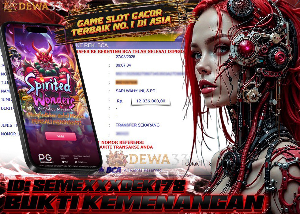 Situs DEWA33 kembali menjadi sorotan setelah salah satu member setianya, dengan ID SEMEXXXDEK178, berhasil membawa pulang kemenangan spektakuler senilai Rp 12.036.000 hanya dalam satu sesi permainan di game Spirited Wonders. Game bertema dunia mistis ini memang dikenal dengan atmosfer unik yang penuh kejutan serta fitur bonus melimpah yang mampu memberikan peluang kemenangan besar. Tidak sedikit pemain yang menyebut Spirited Wonders sebagai salah satu permainan slot online paling gacor karena sering memicu scatter, wild, hingga free spin dengan multiplier tinggi. Kemenangan besar yang diraih SEMEXXXDEK178 ini menjadi bukti nyata bahwa bermain di DEWA33 bukan hanya sekadar hiburan, tetapi juga peluang emas untuk mendapatkan keuntungan finansial nyata dari setiap putaran.
