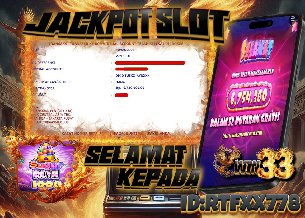Bukti Kemenangan Slot Sugar Rush 1000 di Win33 – Pemain RTFXX778 Raih Jackpot Fantastis!