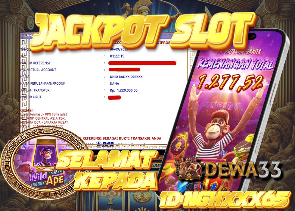 Kabar gembira kembali datang dari DEWA33, situs slot online terpercaya yang sudah dikenal luas di kalangan pecinta slot. Pada 06 September 2025, seorang pemain setia dengan ID NGHXXX65 sukses meraih kemenangan besar dalam permainan Wild Ape, dengan total hadiah mencapai Rp1.277.520 hanya dari beberapa kali putaran.