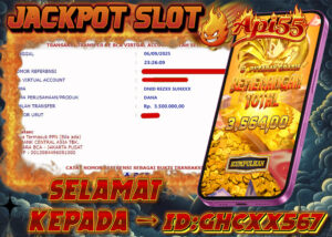 Kemenangan besar kembali hadir dari API55, situs slot online terpercaya yang selalu membuktikan diri sebagai tempat paling gacor untuk para pecinta slot. Pada 07 September 2025, seorang member setia dengan ID GHXX567 berhasil meraih kemenangan spektakuler di game Rooster Rumble,