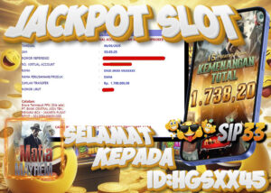 Dunia slot online kembali digemparkan dengan kemenangan spektakuler yang terjadi di situs terpercaya SIP33. Pada 06 September 2025, salah satu member setia dengan ID HGSXX45 berhasil meraih kemenangan besar senilai Rp1.738.200 hanya dari permainan Mafia Mayhem. Bukti transaksi menunjukkan bahwa