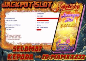π₯ Api55 Hadirkan Kemenangan Lagi! ID: MAMXX233 Menang Rp 2,2 Juta di Slot Online π₯ Kemenangan demi kemenangan terus tercatat di Api55, situs slot online terpercaya yang selalu memberikan peluang besar untuk para pemainnya. Kali ini, member dengan ID: MAMXX233
