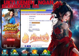 Member API55 dengan ID KOSXXXRTI55 sukses meraih kemenangan Rp3.000.000 di game The Queen’s Banquet. Pembayaran cepat, aman, dan lancar via transfer BCA ke DANA.