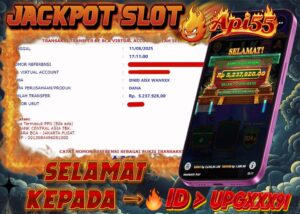 Kemenangan Spektakuler di Api55 Pada tanggal 11 Agustus 2025 tepat pukul 17:11 WIB, salah satu member setia Api55 dengan ID UPGXXX91 sukses membawa pulang kemenangan fantastis sebesar Rp 5.237.928. Hanya dengan 15 spin gratis, kemenangan besar ini langsung ditransfer ke