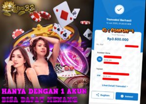 Kemenangan fantastis dari member funfun**1 di situs LOTUS33! Bermain Baccarat, ia berhasil meraih Rp3.600.000 dan langsung dicairkan melalui rekening BRI. Simak kisah lengkapnya di sini.