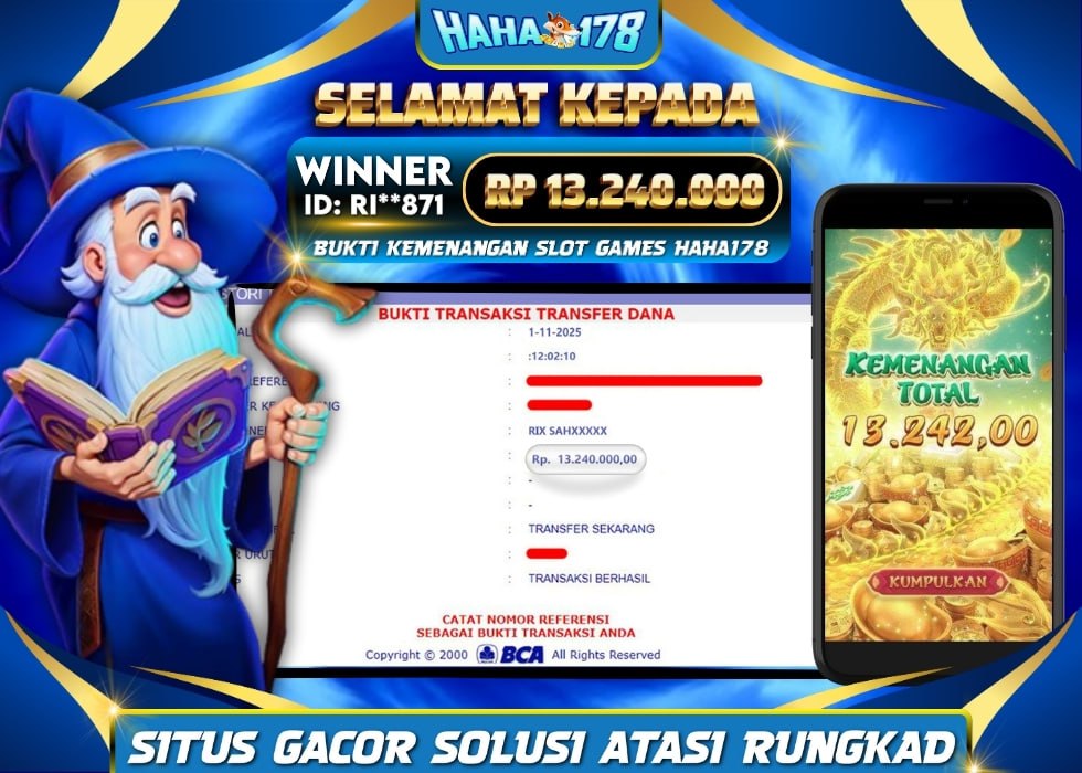 Kisah kemenangan RI871 dengan total hadiah Rp13.240.000 pada tanggal 1 November 2025 menjadi bukti nyata bahwa HAHA178 bukan hanya situs hiburan, tetapi juga tempat di mana keberuntungan bisa menjadi kenyataan.