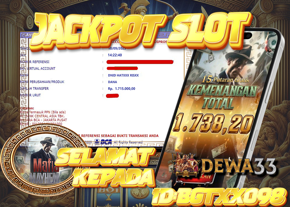๐ฃ Bukti Kemenangan Slot Mafia Mayhem โ Pemain BGTXX098 Menang Besar di Dewa33!