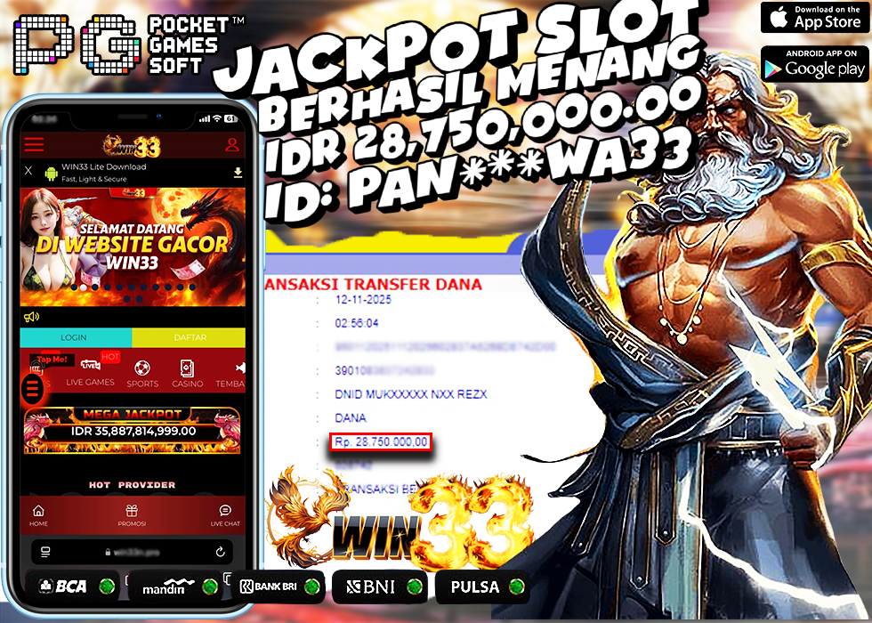 Kemenangan luar biasa senilai Rp28.750.000 semakin mengukuhkan posisi WIN33 sebagai situs slot paling gacor dan terpercaya tahun 2025. Dengan teknologi modern, pelayanan cepat, dan peluang kemenangan tinggi, WIN33 membuka kesempatan besar bagi siapa pun yang ingin meraih kemenangan spektakuler berikutnya!