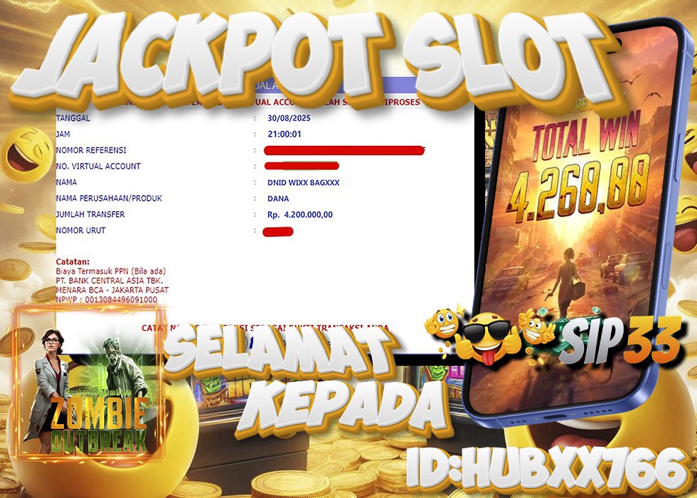 🔥 Jackpot Fantastis di SIP33! ID: HUBXX766 Menang Rp 4,2 Juta di Slot Zombie Outbreak 🔥